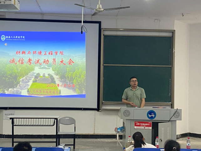 为树立学生诚信为本的道德观念,营造积极向上的考试气氛,进一步推进学风建设,引导学生诚信考试、诚信做人。材料与环境工程学院于2022年6月13日中午在致远楼120教室召开了期末考试诚信动员大会。参加会议人员有学院党总支副书记陈佩君、副院长胡继林,各班级班长、团支书、学习委员为代表的主要干部,会议由辅导员伍荻老师主持。