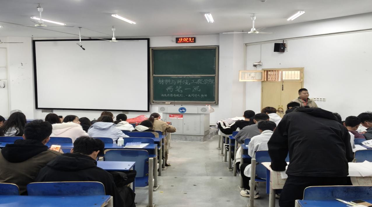 为深入落实“以文化人、以美育人”理念,夯实学生专业基本功,传承中华优秀传统文化,2025年11月25日中午,材料与环境工程学院在致远楼119教室成功举办beat365正版唯一官网必一以“两笔共谱新规划 一画同抒大情怀”为主题的“两笔一画”书写院内初赛。