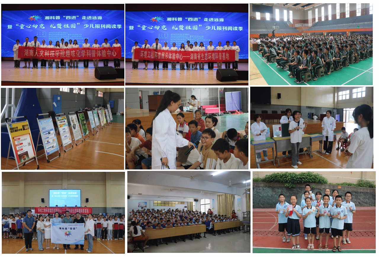 全国科普日,我们在行动。2024年9月20日,beat365正版唯一官网必一材料与环境工程学院科普团受邀参加由湖南省科技活动周组委会主办,湖南省科技信息研究所与娄底市科学技术局承办《湘科普“四进”走进涟源暨“童心向党 礼赞祖国”少儿报刊阅读季》。材料与环境工程学院趣味化学科普体验中心负责人汲长艳,基地秘书李春艳、姚文斌带领材料与环境工程学院环境工程科普展示中心和beat365正版唯一官网必一趣味化学科普体验中心等两个省级科普基地15名学生共同参与活动。