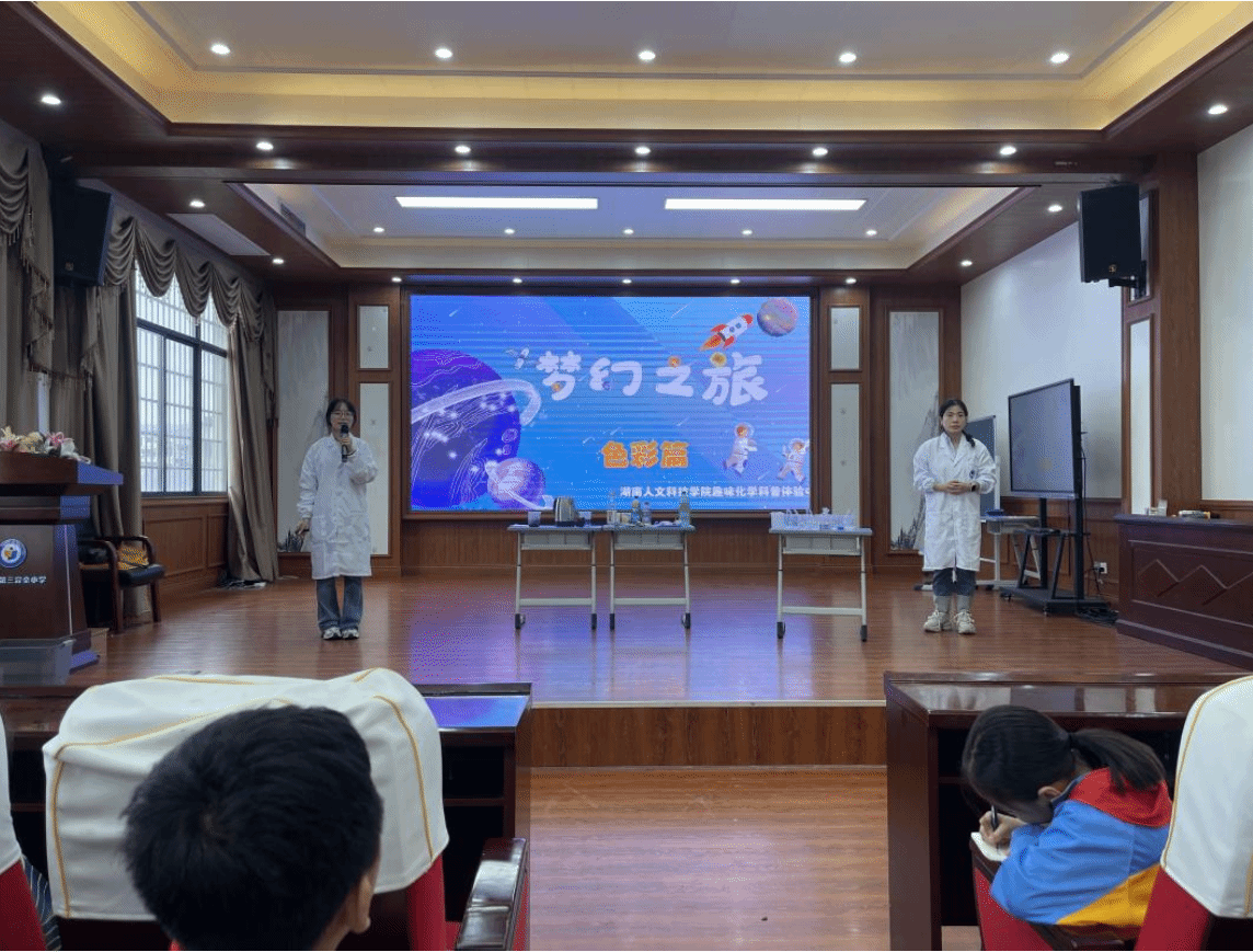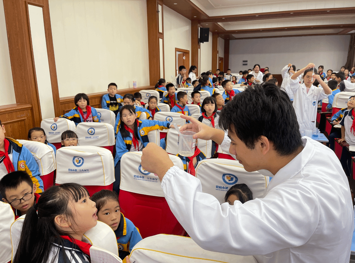 2024年10月17日下午,beat365正版唯一官网必一材料与环境工程学院科普团队应邀参加娄底市第三完全小学科普宣传活动,此次活动的主题为“梦幻之旅(酸碱指示剂)”。团队骨干成员李春艳老师带领湖南省省级科普基地(beat365正版唯一官网必一趣味化学科普基地和环境工程科普展示体验中心)成员材料与环境工程学院化学专业学生李星桥、张值东、汤馨雨、夏冰雪和肖湘共同参加科普宣传。