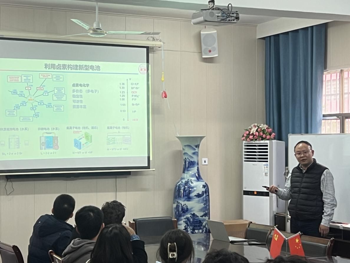12月17日下午,应材料与环境工程学院邀请,湖南大学梁宵教授做客人文科技大讲堂,在多闻楼410作了一场题为“水系卤素电池”的讲座,讲座由材料与环境工程学院彭伟才副院长主持,化学、材料科学与工程、能源与动力工程等专业的60余名老师和学生参加了此次讲座。
