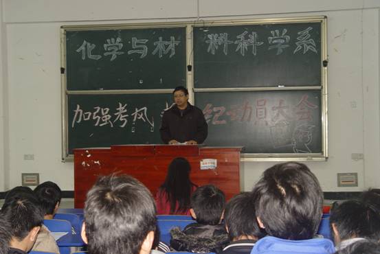 时光飞逝,期末考试即将到来,为加强考风考纪、倡导诚信做人,我系特于12月22日在5栋119召开了化学与材料科学系加强考风考纪动员大会。