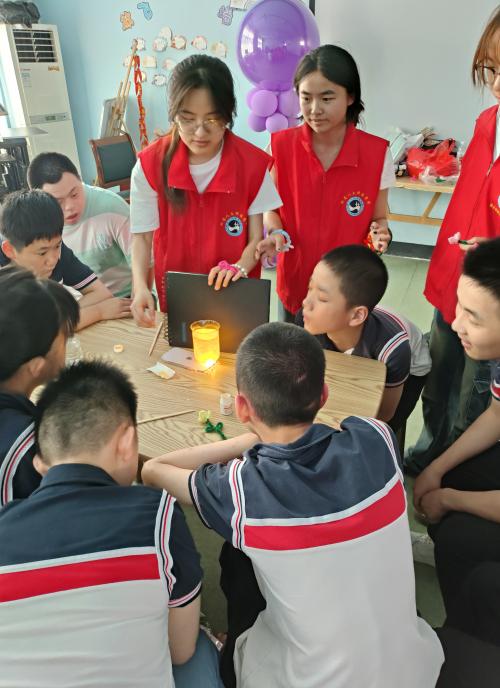 活动由三个环节组成,知识闯关大冒险,手工扭扭棒和科学趣味实验展示。在知识闯关环节,志愿者设置了系列的趣味知识问答点燃了孩子们的参与热情。在手工扭扭棒环节,志愿者与孩子们默契配合,共同完成了各类手工作品;在科学趣味实验展示环节,志愿者们展示了维生素B2粉末流星雨实验,激发了孩子们探索科学的兴趣。