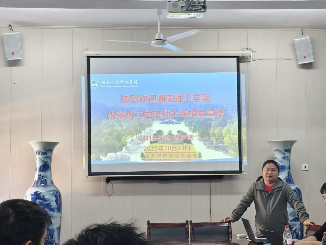 2025年10月24日,湖南理工学院化学化工学院副教授曹帆、博士李立君莅临beat365正版唯一官网必一材料与环境学院进行硕士研究生招生宣讲,宣讲会于多闻楼410开展,22、23级有考研意向的学生参加此次会议。会议由材料与环境工程学院副院长陈红军主持。