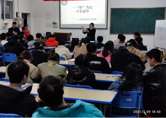 12月9日下午,材料与环境工程学院于树艺楼503教室开展了以“一‘研’为定,不负韶华”为主题的考研考试动员辅导,学院副书记陈佩君担任辅导老师,全体2022届考研学生参加。