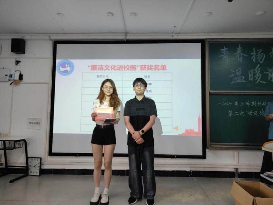 会上首先为廉洁文化进校园活动获奖学生颁奖。然后进行安全教育视频观看,督促同学们强化安全意识。李雷震老师提醒参加娄底马拉松的同学要注意保护好自身安全,并进一步规范了请假手续。李璐玢老师对即将要展开的工作以及近期要开展的比赛进行布置,请各位班委动员同学们积极参与课外活动,加强班风学风的建设。最后,朱舒腊老师强调身为学生干部一定要有规矩意识,强烈要求班委要起带头作用增强学生的安全意识,维护自身利益,远离网络危险。