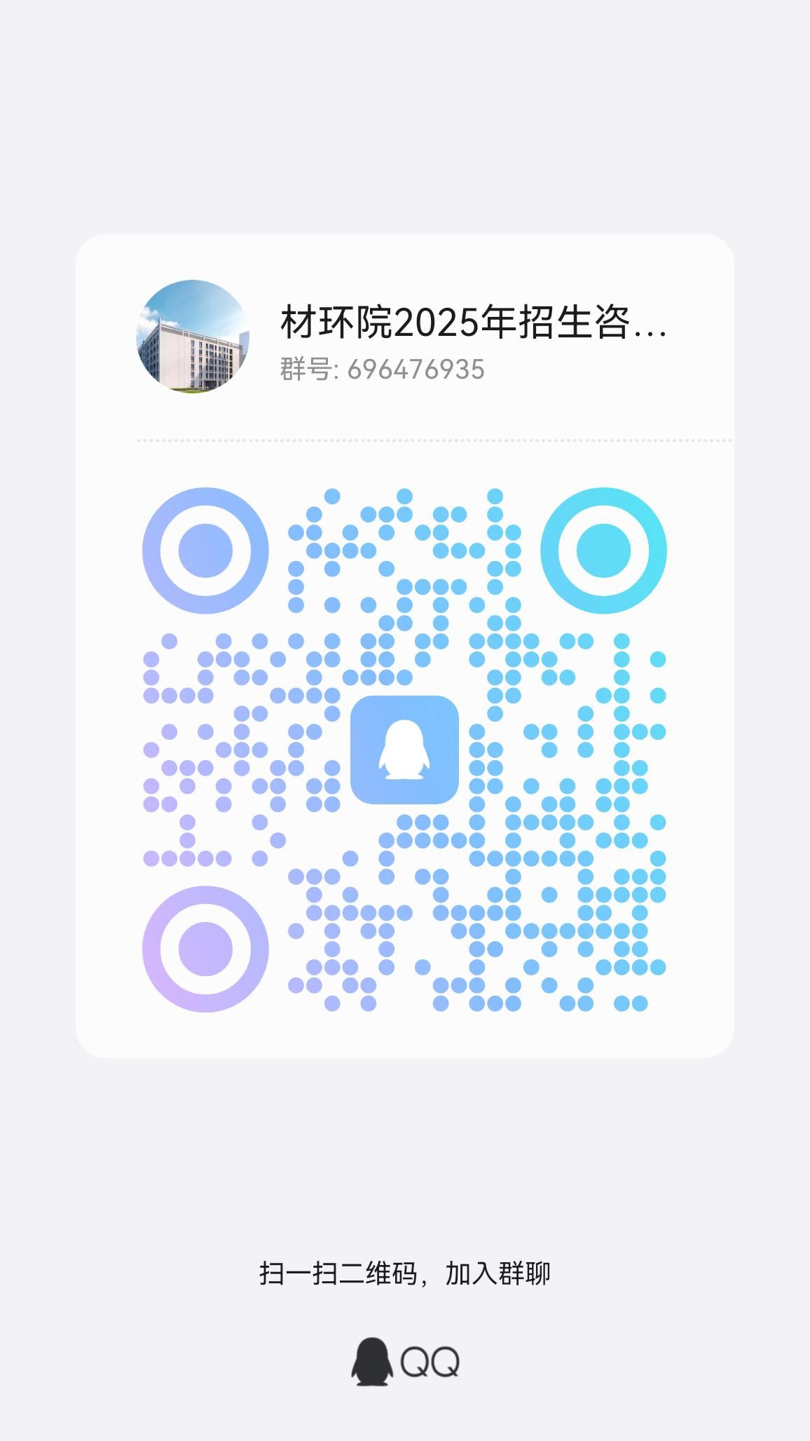 材环学院2025级招生咨询QQ群号:696476935