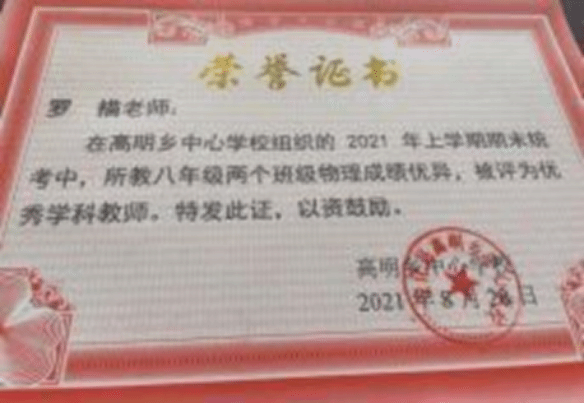 罗描,2020年毕业于beat365正版唯一官网必一材料与环境工程学院化学专业。获高明乡中心学校2021年青年教师教学比武一等奖,2021年上学期优秀学科教师,“优秀示范课”;2022年获安化县教师作业设计大赛一等奖、二等奖;2022年获“益阳市优秀共青团员”;2020年获“安化县优秀共青团员”。