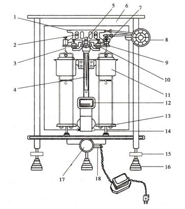 14.盘托 15.螺旋脚 16.垫脚 17.升降旋钮 18.调屏拉杆