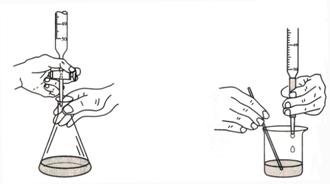 移液管在使用前应洗净,并用蒸馏水润洗3遍。使用时,洗净的移液管要用被吸取的溶液润洗3遍,以除去管内残留的水分。吸取溶液时,一般用左手拿洗耳球,右手把移液管插入溶液中吸取。当溶液吸至标线以上时,马上用右手食指按住管口,取出,微微移动食指或用大拇指和中指轻轻转动移液管,使管内液体的弯月面慢慢下降到标线处,立即压紧管口;把移液管移入另一容器(如锥形瓶)中,并使管尖与容器壁接触,放开食指让液体自由流出;流完后再等15s左右。残留于管尖内的液体不必吹出,因为在校正移液管时,未把这部分液体体积计算在内。