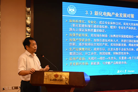 北京航空材料研究院陈大明教授,湖南大学材料科学与工程学院肖汉宁教授分别作《注凝技术在先进陶瓷材料产业化中的应用》和《电子陶瓷产业现代与创新发展》学术报告。陈教授和肖教授分别对注凝技术在先进陶瓷材料产业化应用中的利与弊和新化电子陶瓷产业发展瓶颈及发展对策进行精准解读,报告内容丰富精彩,结构逻辑严密,言简意赅。随后,特邀专家还与参会人员进行了面对面的交流,答疑解惑,为促进电子陶瓷行业发展问诊把脉,推动行业技术交流合作。