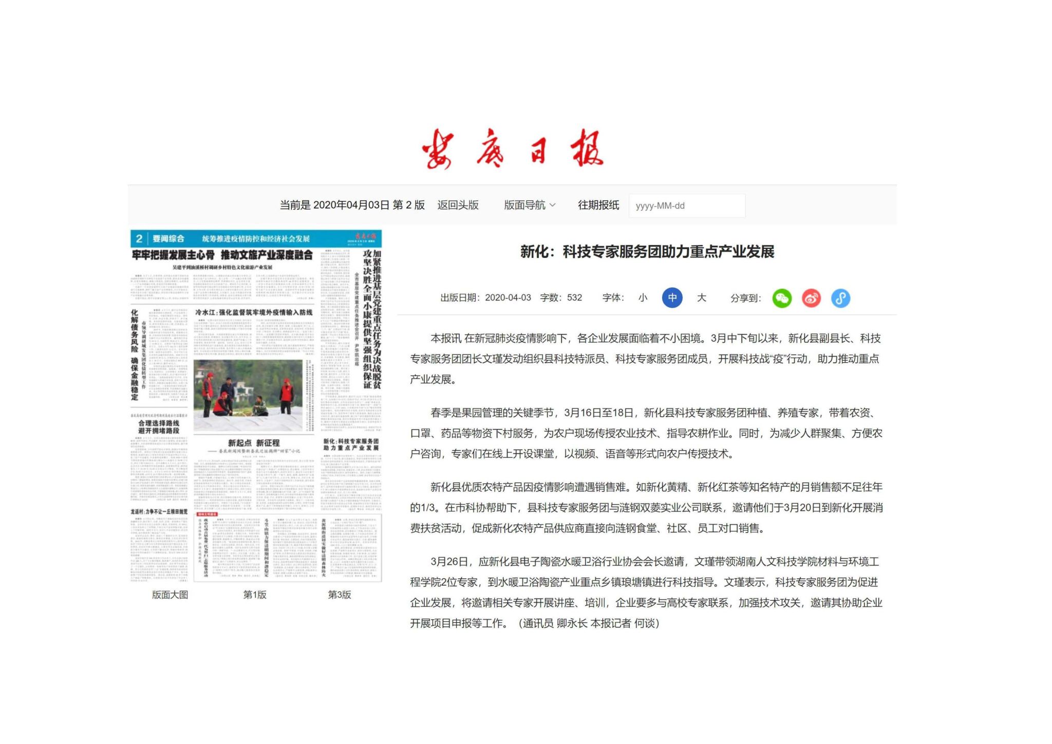 新化:科技专家服务团助力重点产业发展