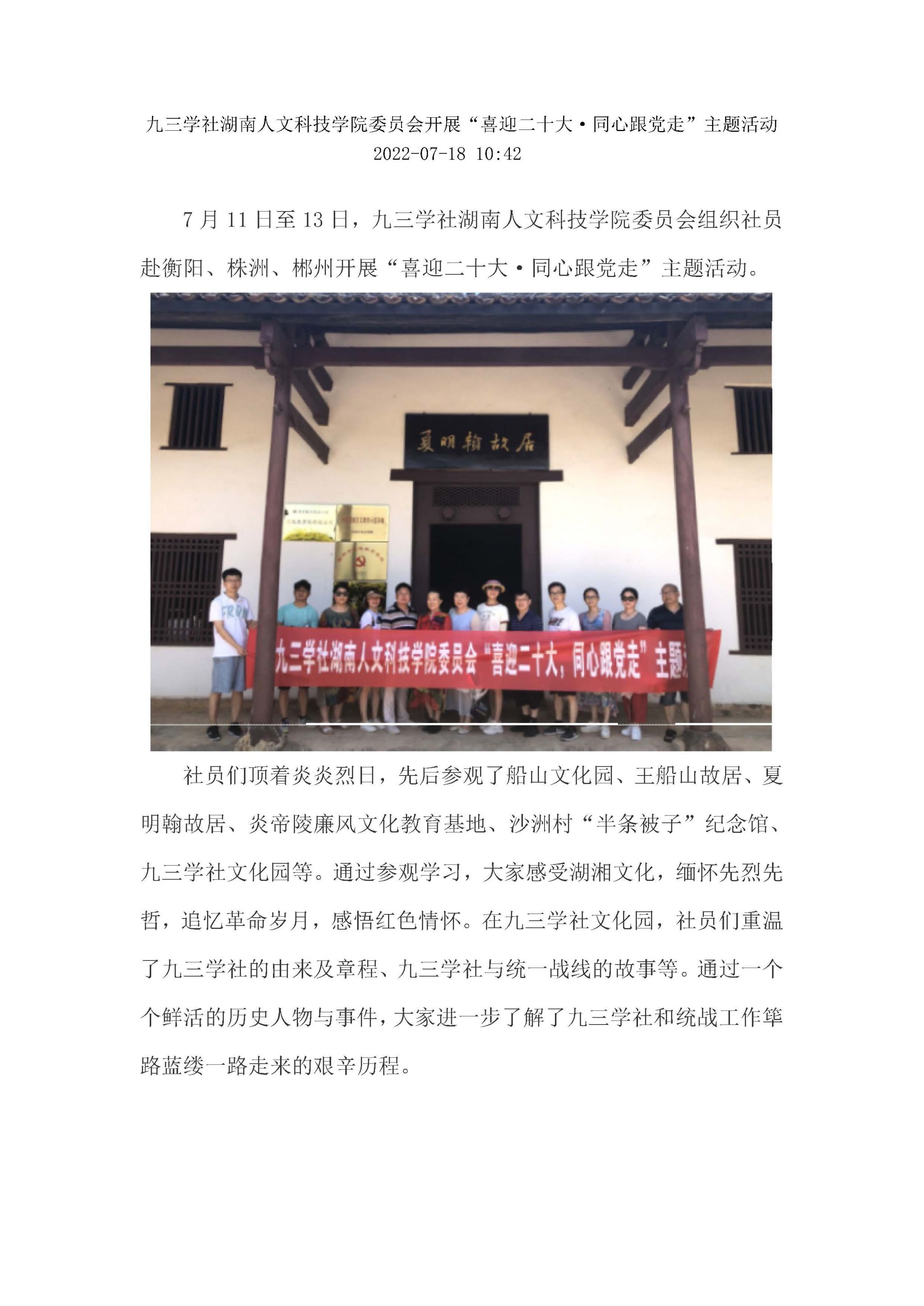 九三学社beat365正版唯一官网必一委员会开展“喜迎二十大·同心跟党走”主题活动