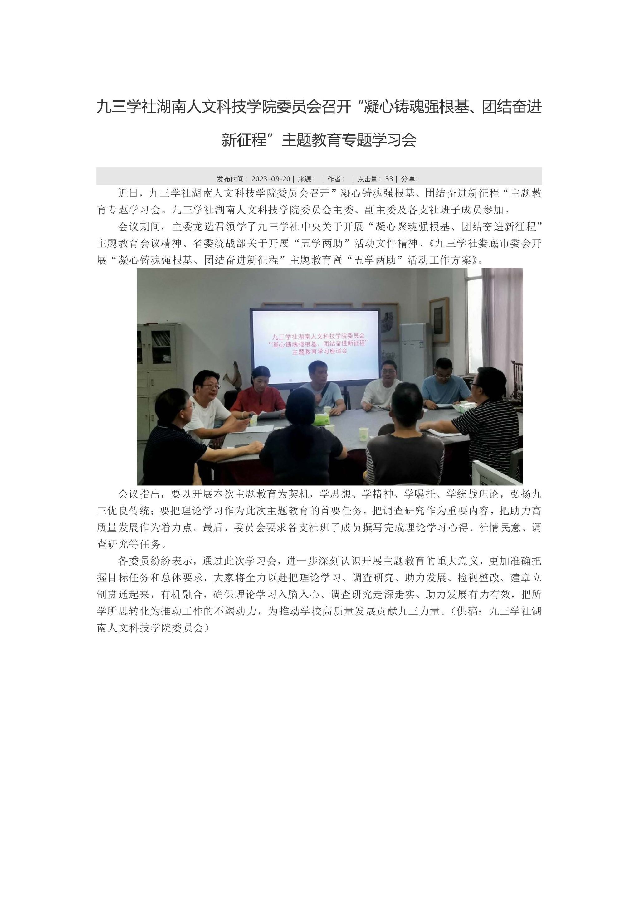 九三学社beat365正版唯一官网必一委员会召开“凝心铸魂强根基、团结奋进新征程”主题教育专题学习会