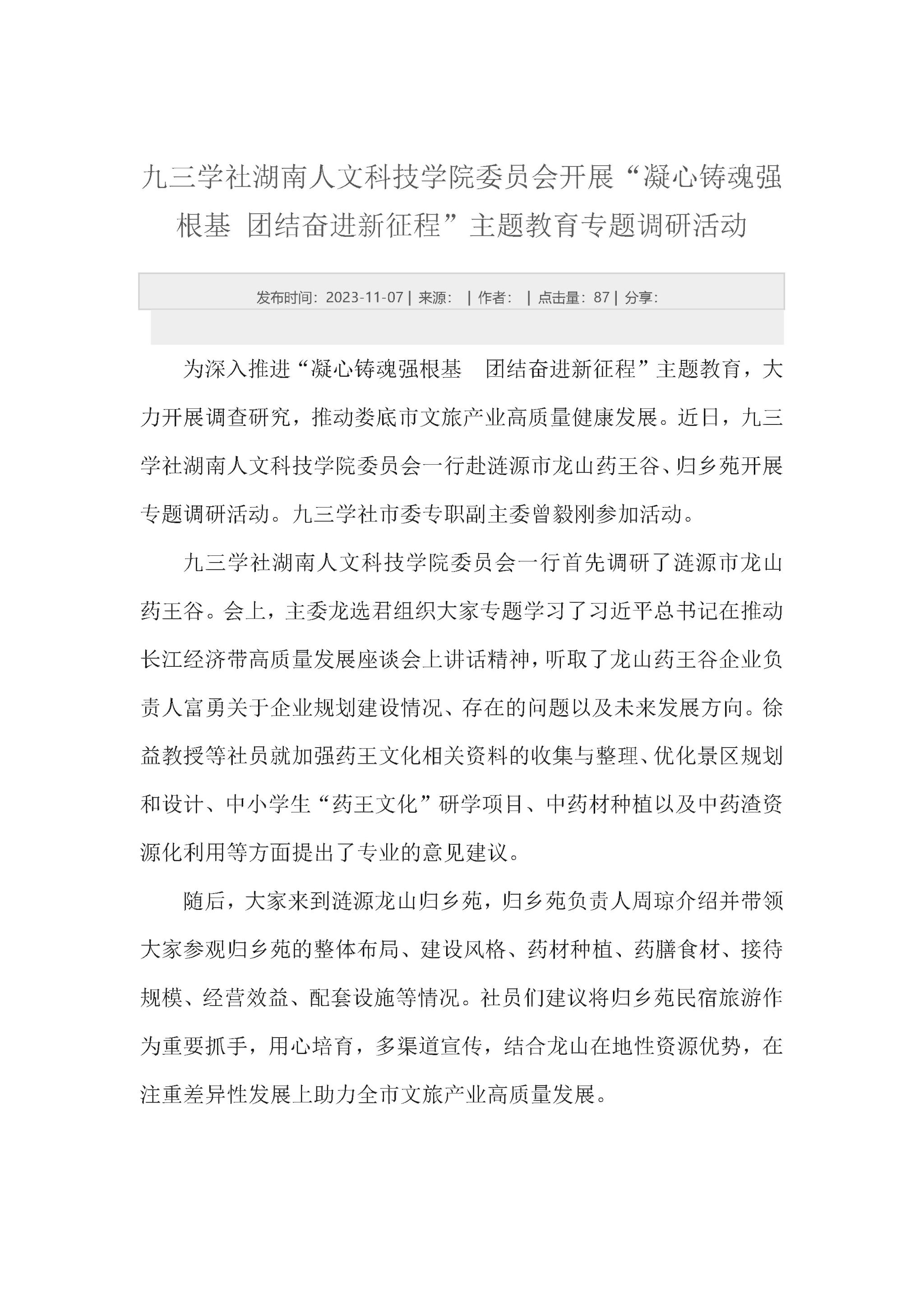 九三学社beat365正版唯一官网必一委员会开展“凝心铸魂强根基 团结奋进新征程”主题教育专题调研活动