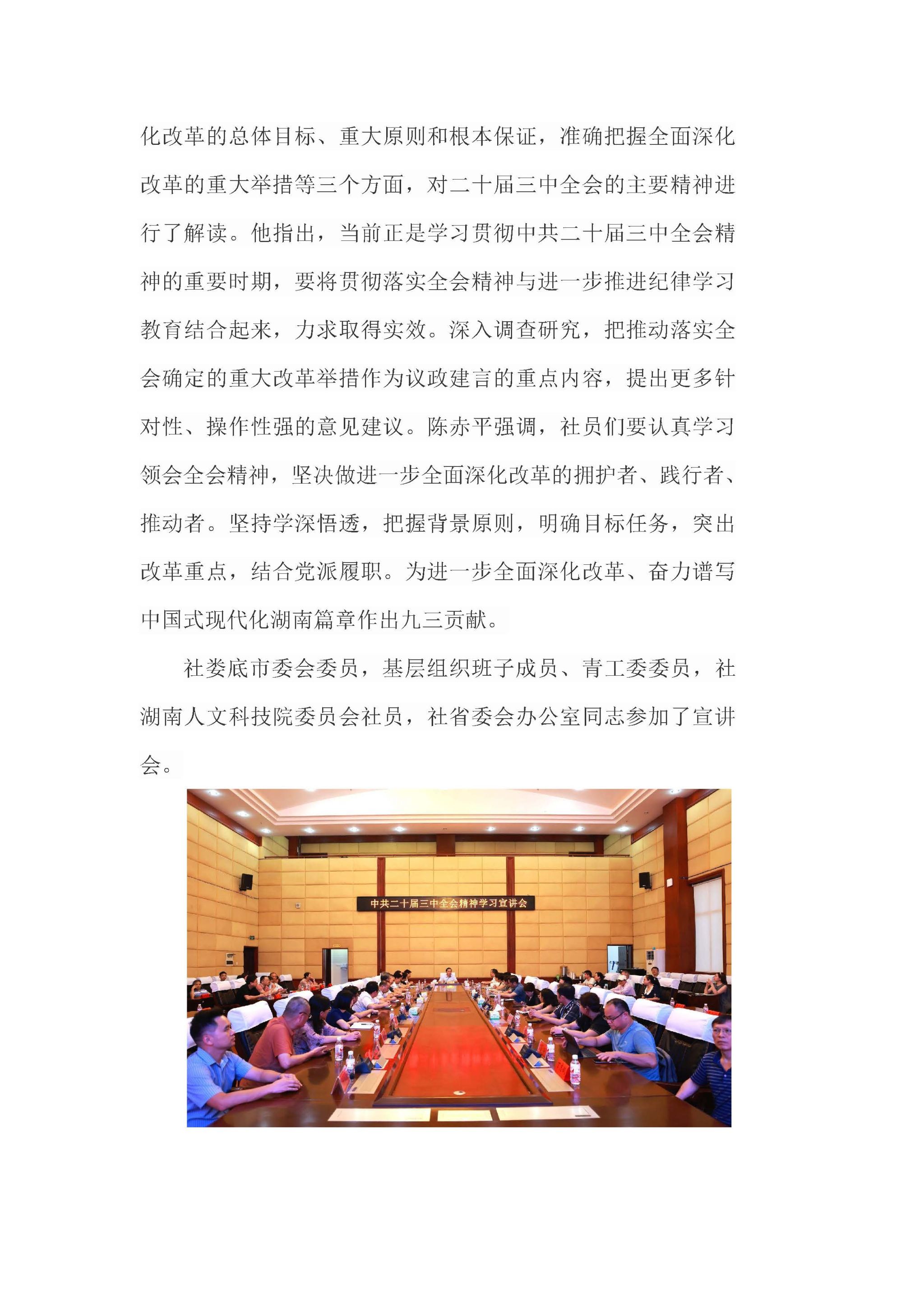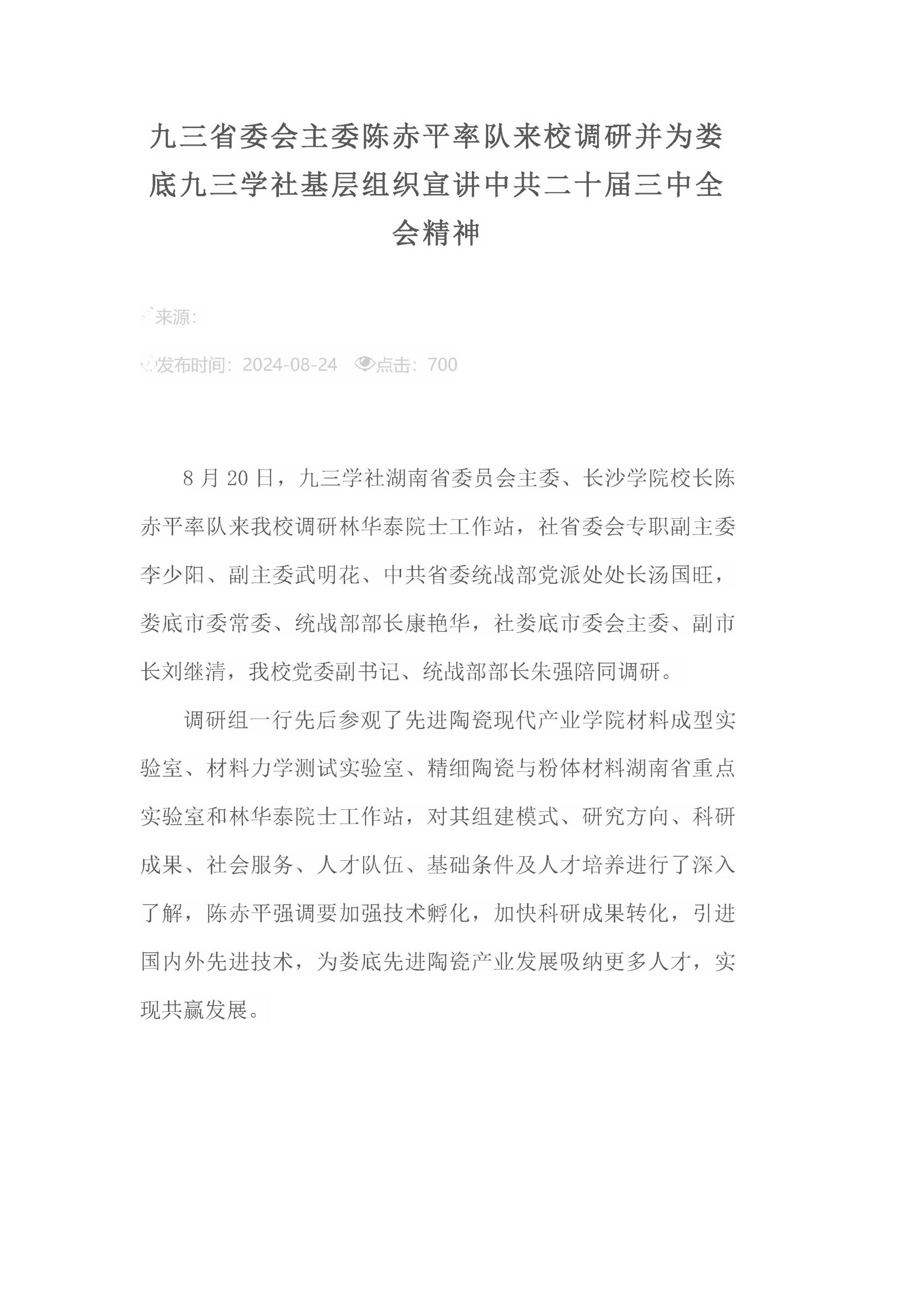 九三省委会主席陈赤平率队来校调研并为娄底九三学社基层组织宣讲中共二十届三中全会精神
