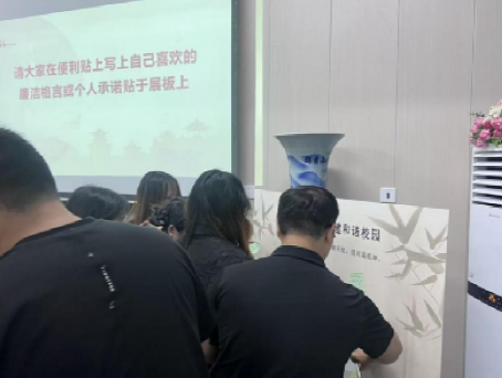 活动精心设置了一面廉洁主题便利贴共创墙,全体党员结合自身材料与环境工程的专业背景,深入思考并寻找能够象征廉洁品质的材料或环境元素,他们将这些富有深意的 “廉洁格言”与个人的庄严承诺一同书写在便利贴上,郑重地粘贴于展板之上,共同构筑起一道亮丽的“学院党员清廉文化展板”。