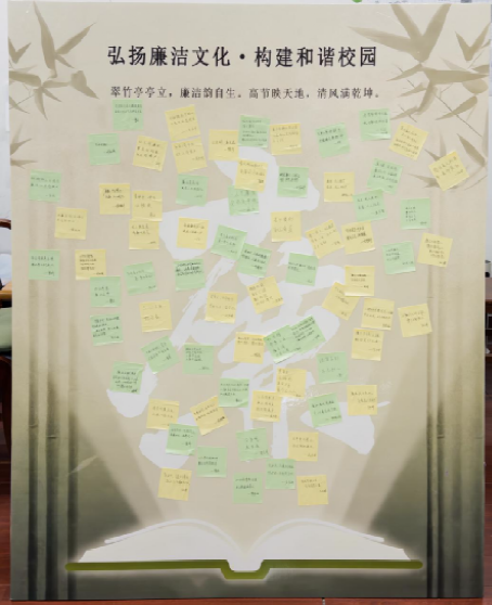 展板上,一句句发自肺腑的格言承诺熠熠生辉:“身正则刚直,行正则威严!”彰显了党员对刚正不阿品格的追求;“世上黄金贵,清廉价更高。” 则深刻诠释了清廉价值的至高无上;“行而不轻!”“一朴涵琦”等简短有力的文字,同样表达了党员们洁身自好、稳重前行的决心,这些凝聚着思考与信念的便利贴,不仅展现了专业特色与廉洁文化的有机融合,更在支部内部营造了“以廉为荣、以贪为耻”的浓厚氛围。
