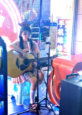 直播之余,王伊雨还背着一把41寸的吉他,乘坐来回三个小时的地铁去街头弹唱。一个月时间,直播带货赚了5300元,街头演唱赚了900元。