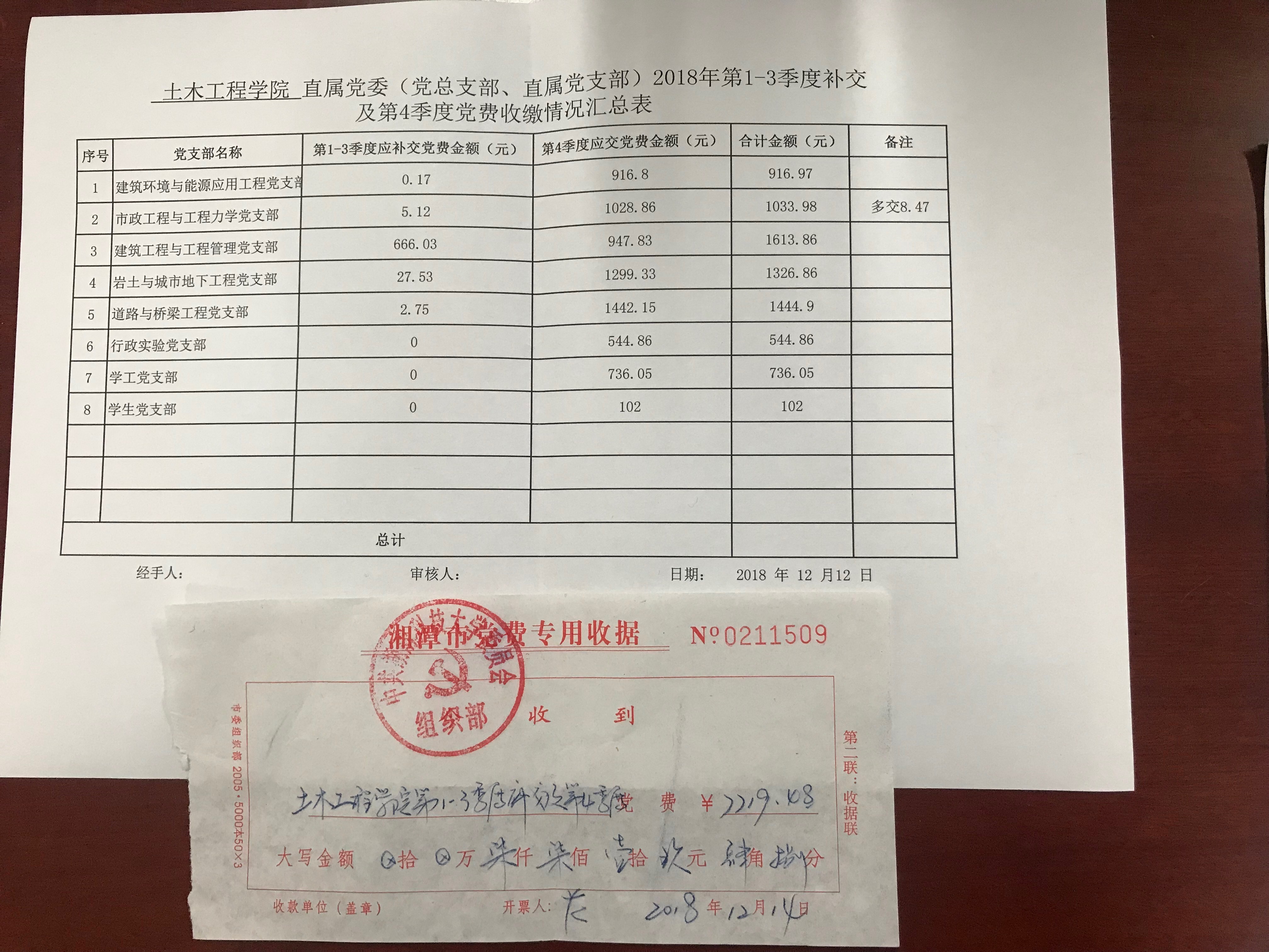 党建工作 党建工作 首页 / 党建人事 / 党建工作 / 公告栏 公告栏 土木学院2018年第1-3季度补交及第四季度党费收缴情况汇总表 发布时间:2018年12月14日 编辑: 访问量: 776net必赢官网