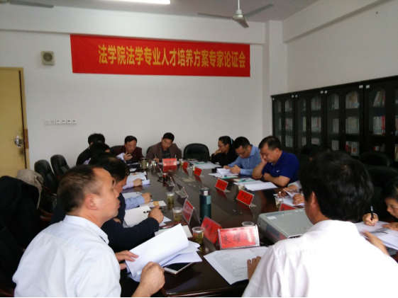 5月24日下午,我院在致远楼308会议室举行了2016版人才培养方案论证会。出席会议的指导专家有娄底市中院民一庭庭长郭超群、娄星区法院政治部主任刘继红、市检察院政策研究室副主任唐燕、娄底人和人律师事务所主任罗伯武、副校长周发明、纪委书记杨鑫铨、产学研中心主任黎建辉。法学院党政领导、法学专业部分教师参加了本次会议,会议由院长朱耀斌教授主持。