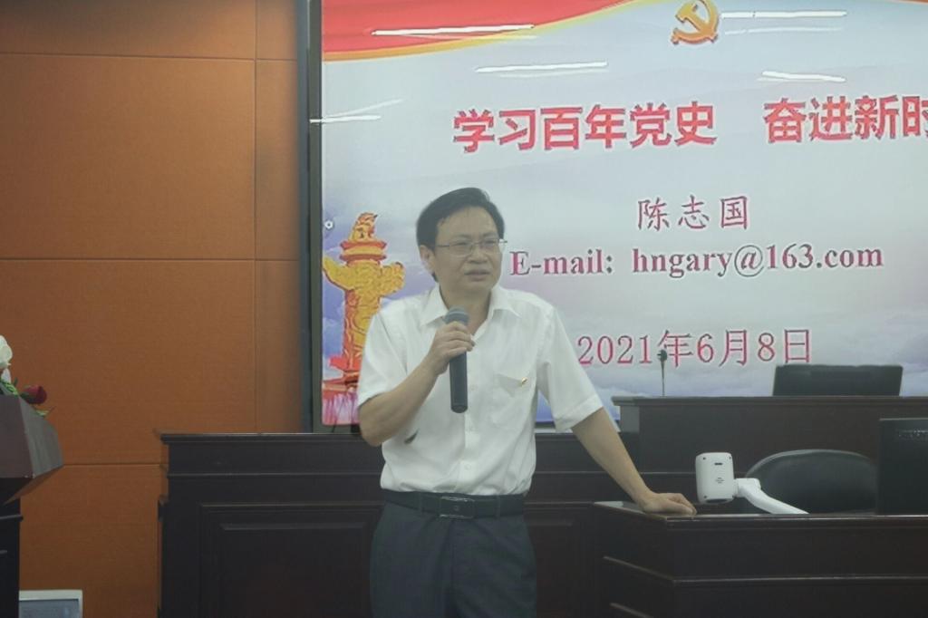 6月8日,学校党委委员、副校长陈志国在致远楼202上题为“学习百年党史,奋进新时代”的党课。审计处全体党员,法学院师生党员、预备党员、入党积极分子参加。党课由法学院党总支副书记、院长朱耀斌同志主持。