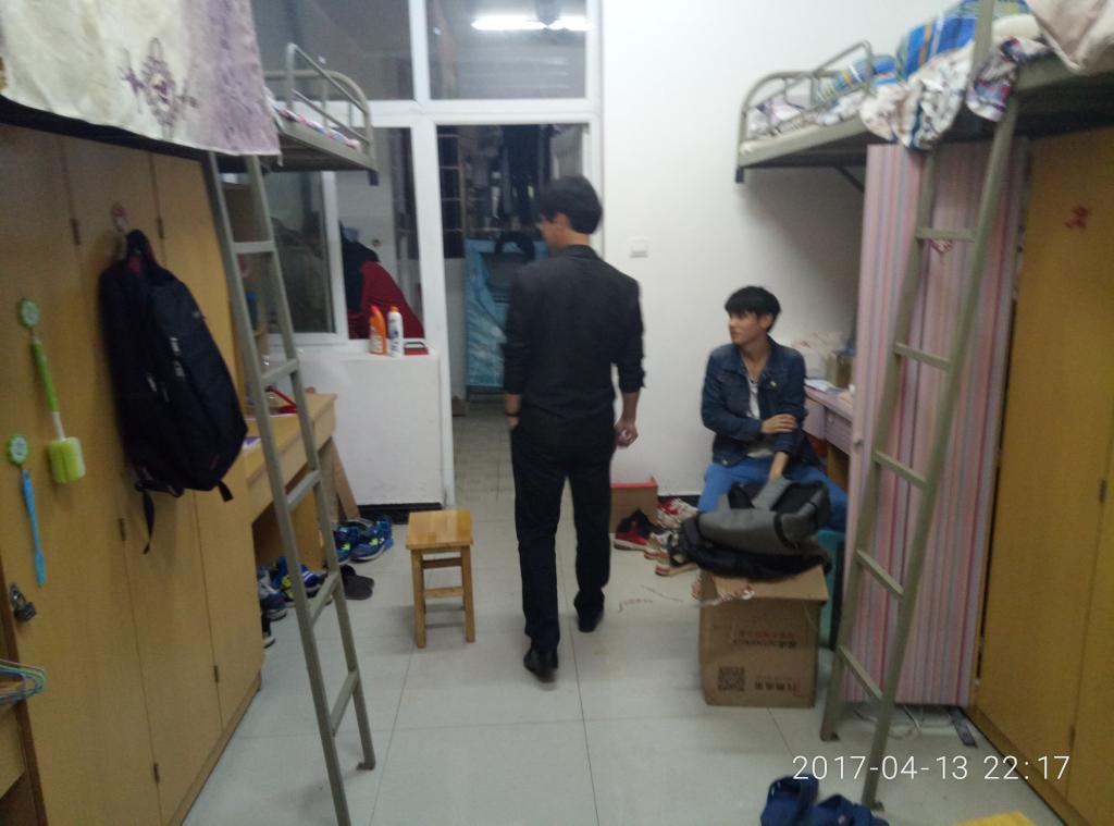 2017年4月13日晚上九点四十分,法学院开展了本学期第一次老师下寝走访本院系学生的宿舍的工作。参与本次工作的有法学院朱耀斌院长、尹钟宏书记以及郭璐等辅导员老师。随同一起还有法学院学生分会宿管部的全体成员和本次部门交换到宿管部的小伙伴们。
