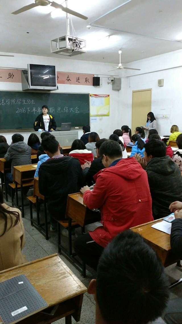 2016年12月28日18:30,法学院学生分会2016下半年学期总结大会在致远楼306举行。此次会议由秘书处干事颜佳丽主持,参加会议的有辅导员谢琼老师,主席覃明喜学长、吴佳锌学姐以及分会全体成员。