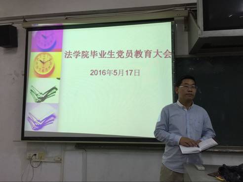 五月的校园里飘散着离别的气息,在毕业生即将离开母校之际,为了更充分地做好毕业生党员离校工作,5月17日晚20:00法学院党总支在致远楼307教室举行了2016届毕业生党员大会,法学院党总支副书记刘依归老师主持了会议,全体2016届毕业生党员参加了会议。