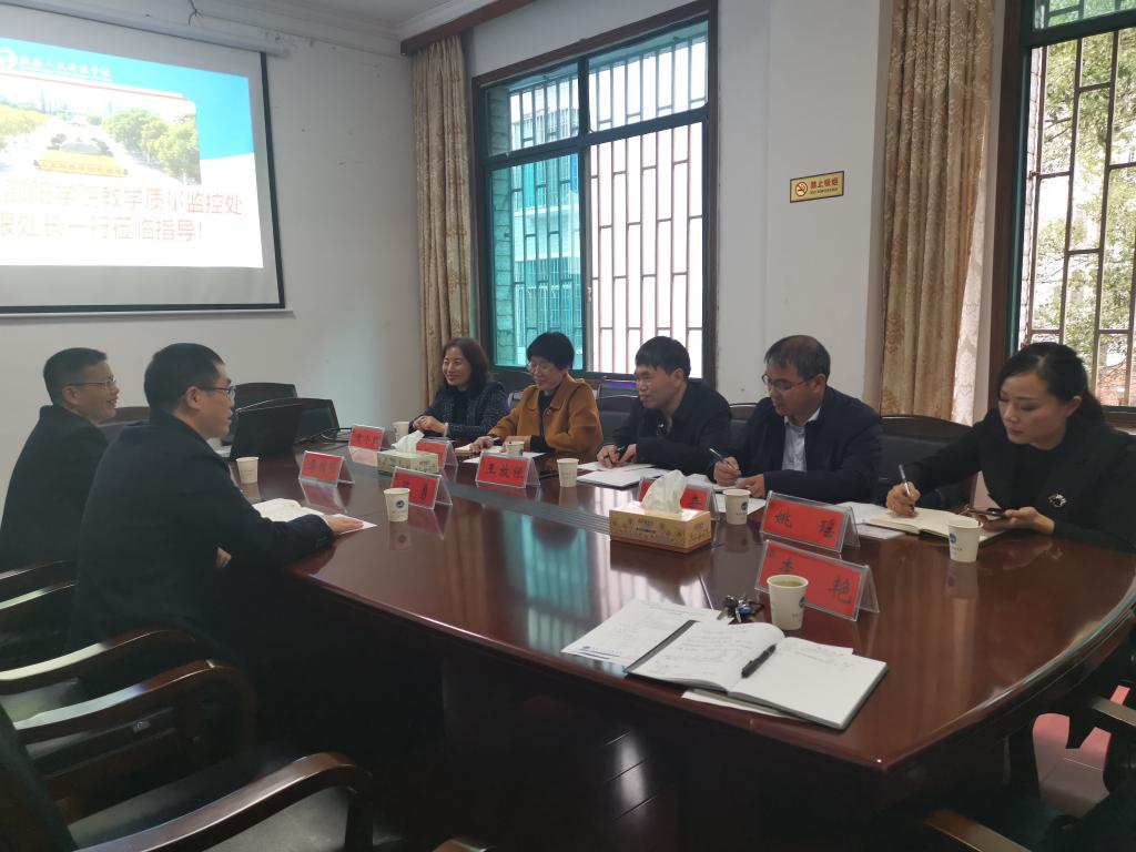 10月15日下午,邵阳学院教学质量监控处处长王放银一行5人来beat365考察交流本科教学审核评估整改和教学质量监控工作,beat365质量监控与发展规划处处长陈勇等在明德楼218会议室与来宾进行了座谈交流。