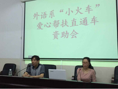 2015年6月11晚,评建办全体党员干部来到外语系,参加了外语系“小火车”爱心帮扶直通车资助大会。