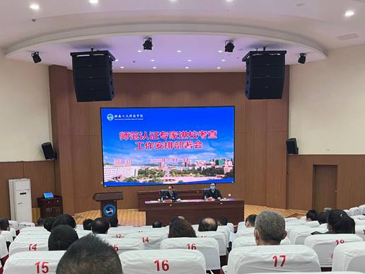 最后,刘铁铭强调师范类专业认证是教育部开展的旨在提高教育教学人才培养质量的具有战略意义的一项重大举措,是检验学校专业建设、人才培养、办学实力和水平的主要标尺,事关学校长远发展,全校上下要统一思想、明确任务、抓好落实。学校将进一步以此为契机,切实贯彻“学生中心、产出导向、持续改进”的理念,丰富和加强师范类专业内涵建设,不断提升教育管理服务的水平,以评促建,以评促改,以评促强,全面保障和提升师范类专业人才培养质量。