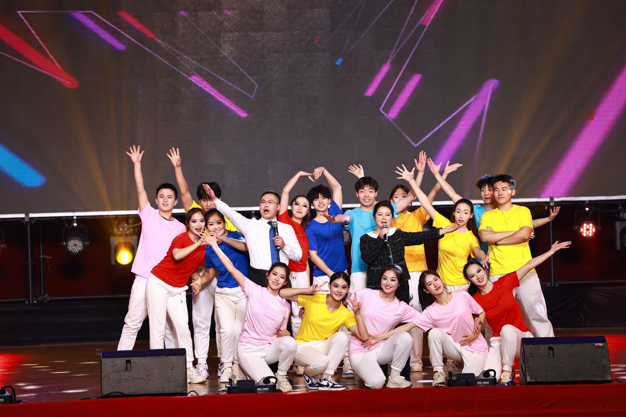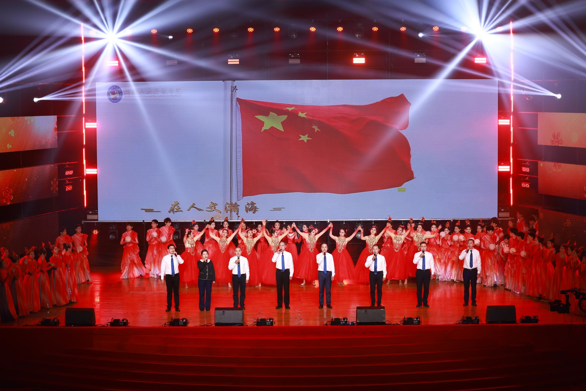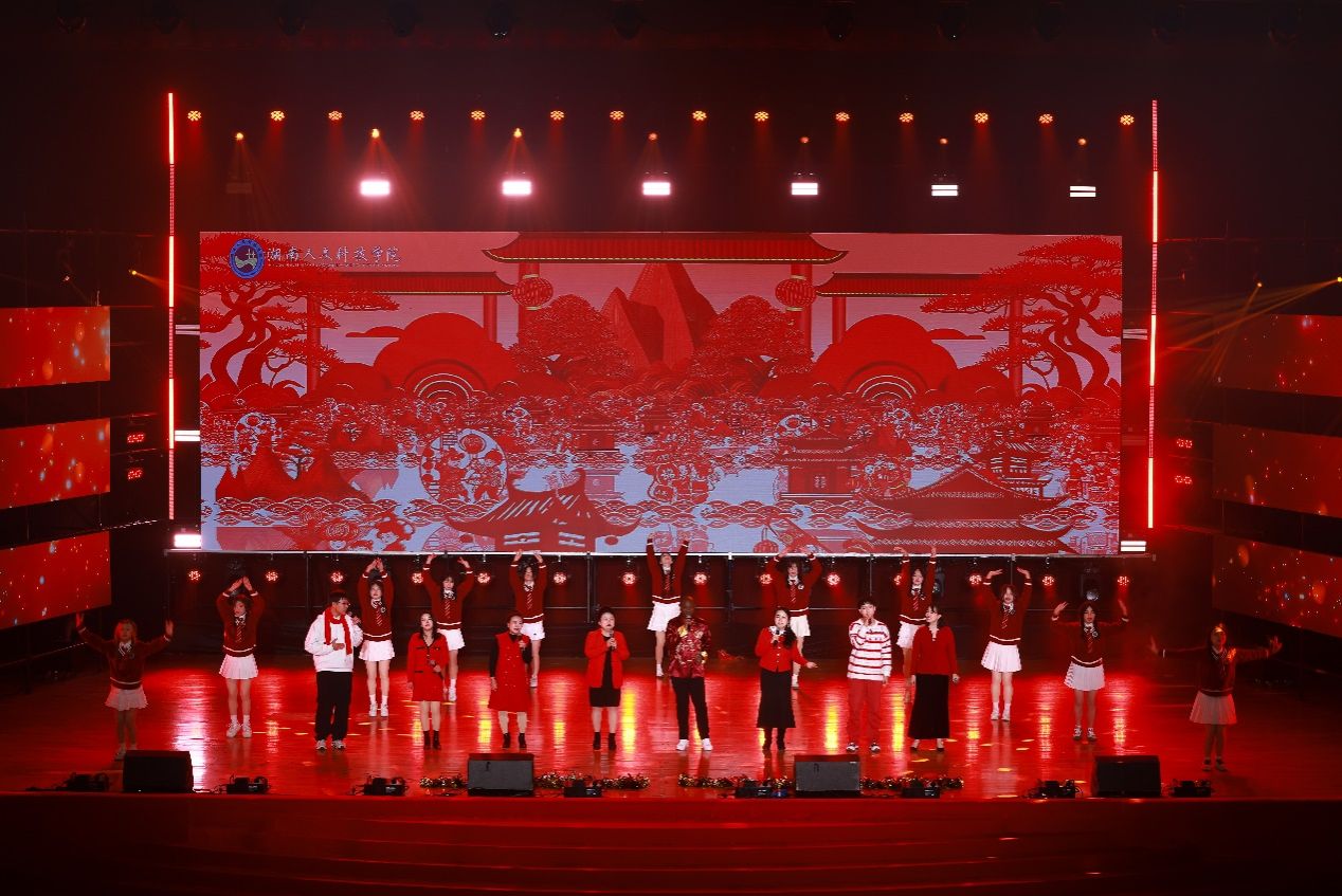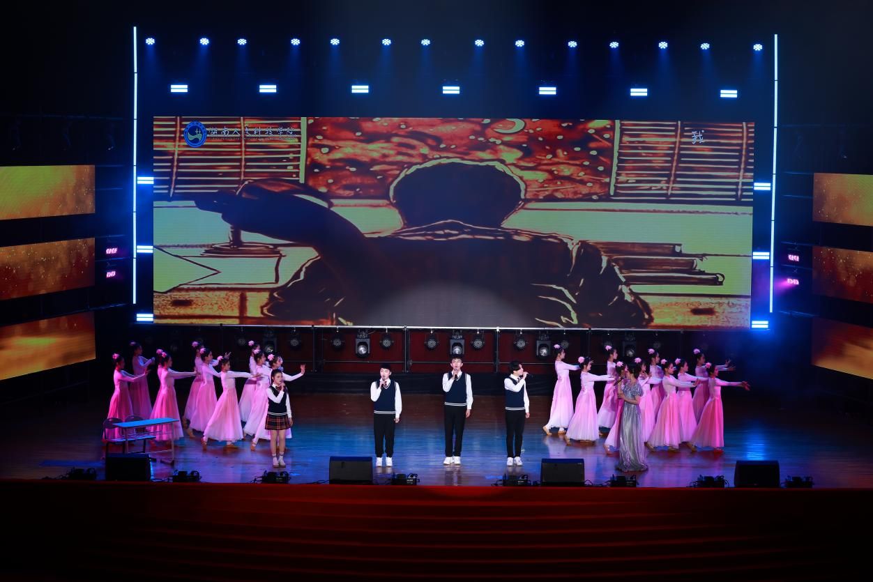 晚会的最后,全体校领导带来歌曲联唱,从《灯火里的中国》到《我的中国心》,从《长江之歌》到《踏浪》,再到《朋友》,一首首经典歌曲汇聚成动人旋律,将晚会的氛围推向新的高潮,随着全场共同高唱校歌《梦想飞翔》,晚会落下帷幕。