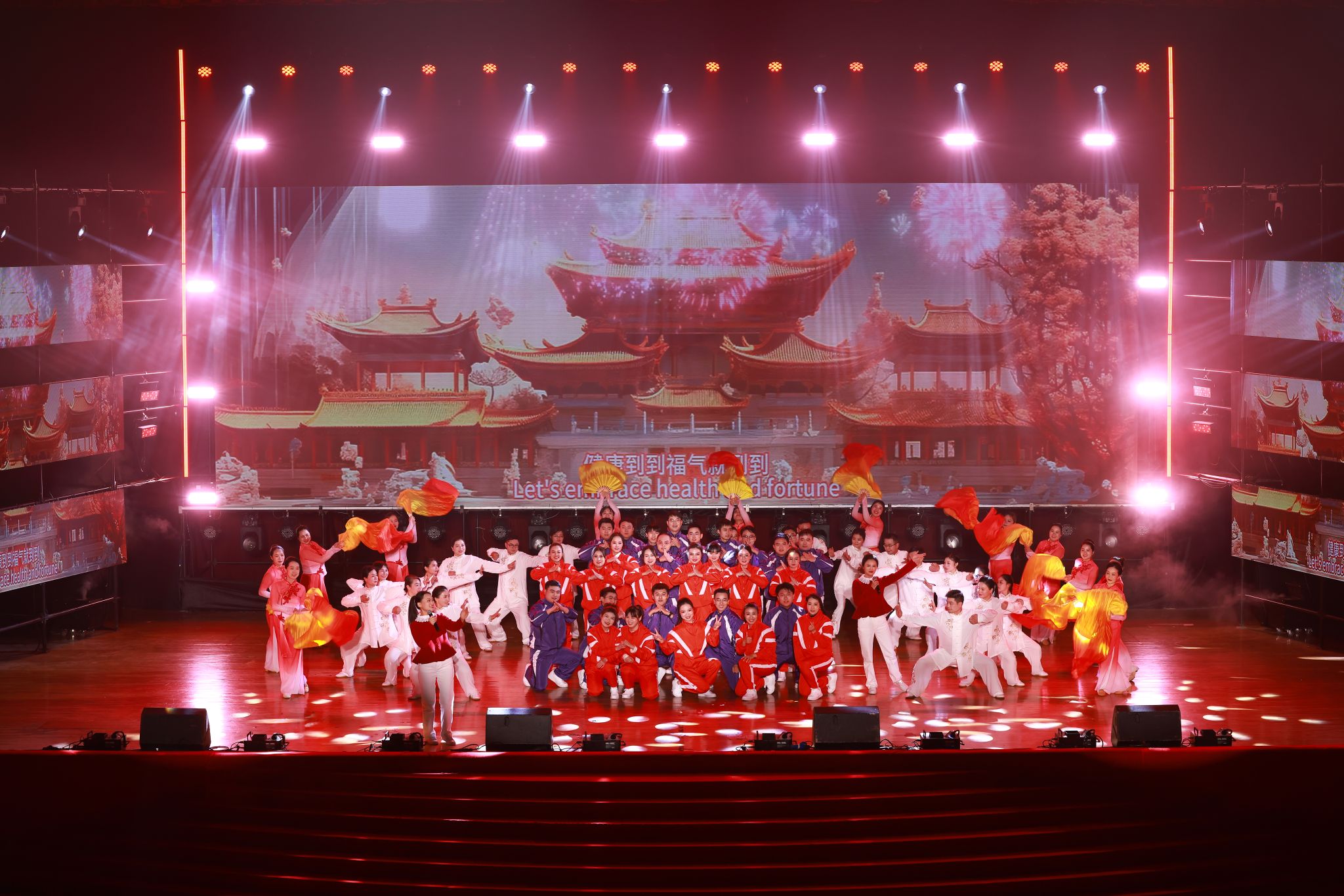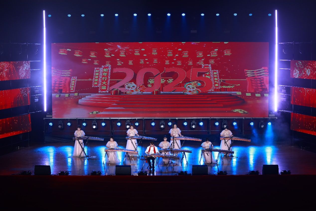 民族管弦乐合奏《金蛇狂舞》《男儿当自强》拉开了晚会的序幕,以激昂的旋律和精湛的演奏技巧,赢得了观众的阵阵掌声。歌舞剧《职场加油站》,让观众感受到职场中的拼搏与奋进,展现了艺术与生活的交融。歌伴舞《念师恩》温馨动人,向所有老师致以崇高敬意,表达对教育工作者的深深感激。朗诵与歌舞表演《我们都是追梦人》,展现着师生们的逐梦精神,激励着每一个人为梦想而努力。舞蹈《莲鼓越歌行》,带领大家领略古典文化的优美意境,感受传统文化的独特魅力。离退处老师们的《我们的时代》,用矫健的身姿诠释了无论年龄都能绽放光彩,焕发着新时代的蓬勃朝气。歌舞表演《健康到到令》,表达了对健康生活的向往和积极向上的精神风貌。古筝合奏《春天来了》则融合中西方音乐元素,带来美妙旋律,预示着新年的希望与生机。