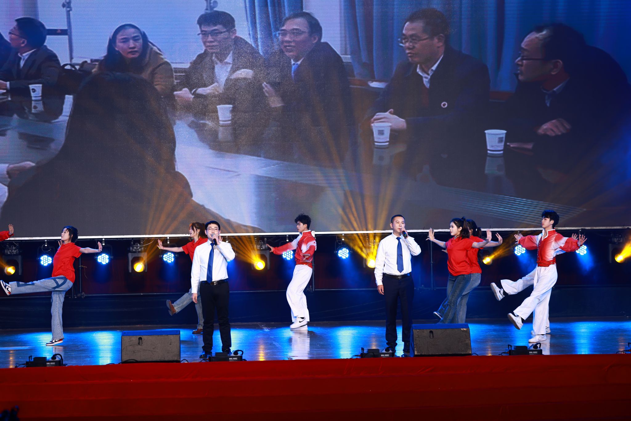 (党委委员、副校长刘铁峰,党委副书记朱强演唱歌曲《长江之歌》)