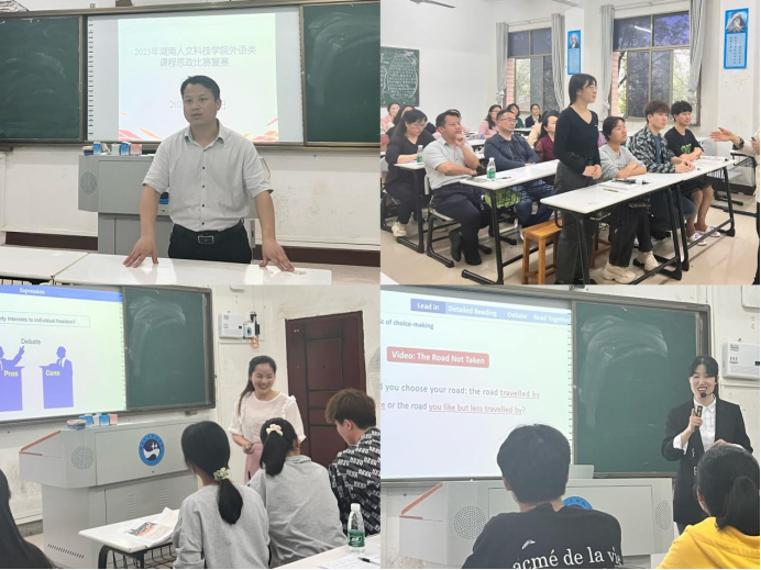 4月18日,在外国语学院播馨楼203教室举行了2023年beat365正版唯一官网必一外语类课程思政教学比赛复赛,本次比赛共有6个团队参赛。参赛选手在15分钟的说课和讲课时间内,结合外语课程的学科特色,把思政元素有机融入到课堂教学中,选题典型,立意新颖,讲解深入浅出,教学风格各具特色,切实做到外语教学与思政教育的有效对接。