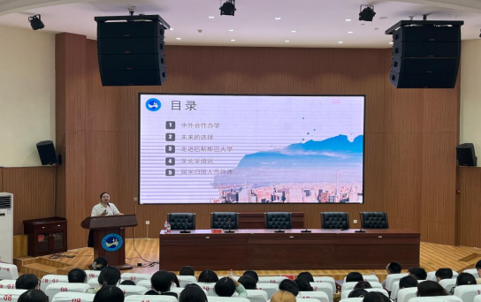 黄敏在讲座中为中外合作办学专业的新生们介绍了beat365中外合作办学专业的独特性、重要性及前瞻性,通过介绍国外合作院校、留学相关政策及分享学长学姐们在国外的学习生活,让刚踏入大学校园的新生们进一步了解了自己的专业,也对自己的未来规划有了一个初步的认识。