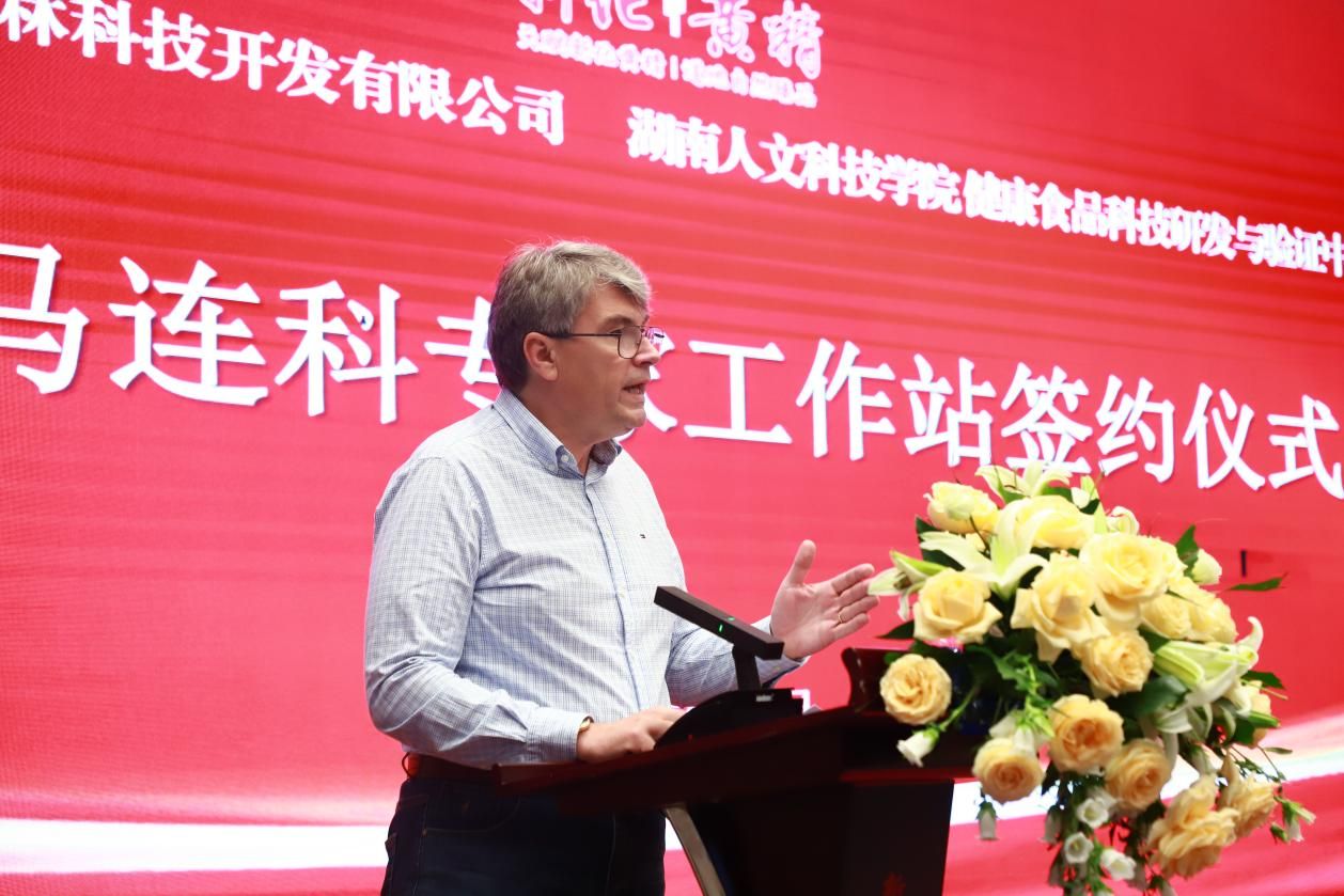 在签约仪式上,朱强表示,作为娄底市唯一的省属本科高校,学校始终坚持"以贡献求支持、以服务求发展"的办学理念,积极响应新化县委县政府助力乡村振兴的发展要求。他指出,从2021年组建湖南省先进陶瓷材料现代产业学院,到与新化茶叶协会开展深度合作,从三区人才计划项目到科技特派员挂职锻炼,beat365与新化县的合作不断深化。他强调,此次企业与国家级高层次人才马连科教授团队合作,是学校践行"把论文写在祖国大地上"的又一重要实践。学校将整合农业与生物技术学院、健康食品科技研发与验证中心等优势资源,全力构建"技术研发——成果转化——产业孵化"的全链条服务体系,为新化黄精产业注入强劲动能,并期待通过这次合作将新化黄精打造成为全国地标产品深加工和特色农业产业发展的新标杆。