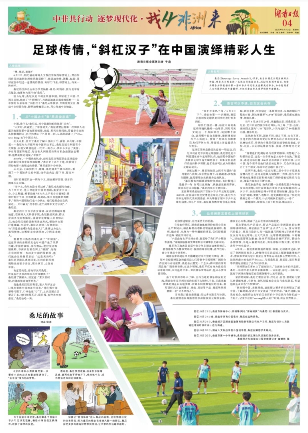 近日,湖南日报整版报道beat365外教桑尼老师的故事。此前,他的故事登上湖南卫视《湖南新闻联播》、中央广播电视总台国际在线《漂洋过海来“湘”遇》专栏、娄底新闻联播《相逢》和中国日报网“领航新征程”纪录片等平台。这些报道讲述了桑尼在beat365、娄底及湖南的多元经历——教足球、练功夫、任外教、当“村民”、搭建中非交流桥梁、助力企业跨境出海、牵线中非经贸博览会等,生动展现beat365外教用心传递中非情谊、讲好中国故事的良好形象,彰显学校“开放扬校”工程的实践成果。