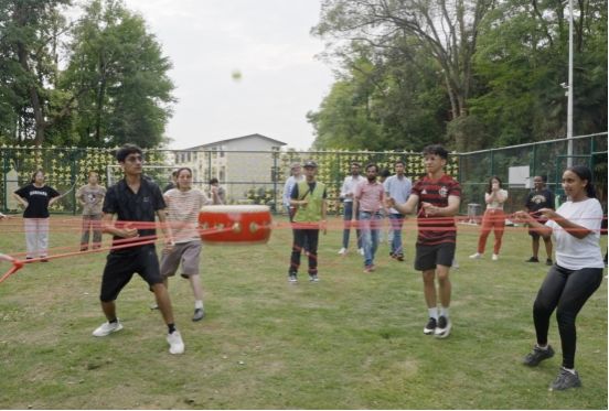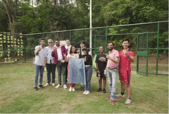 在参观结束后,大家被分成了三个团队,展开了一系列富有趣味性和挑战性的团队比赛项目。其中包括了合作颠球和飞盘等项目。无论是留学生、外籍教师还是中国学生,都积极融入团队,发挥各自的优势,相互配合,共同完成挑战。整个比赛过程中,现场气氛热烈,笑声不断。
