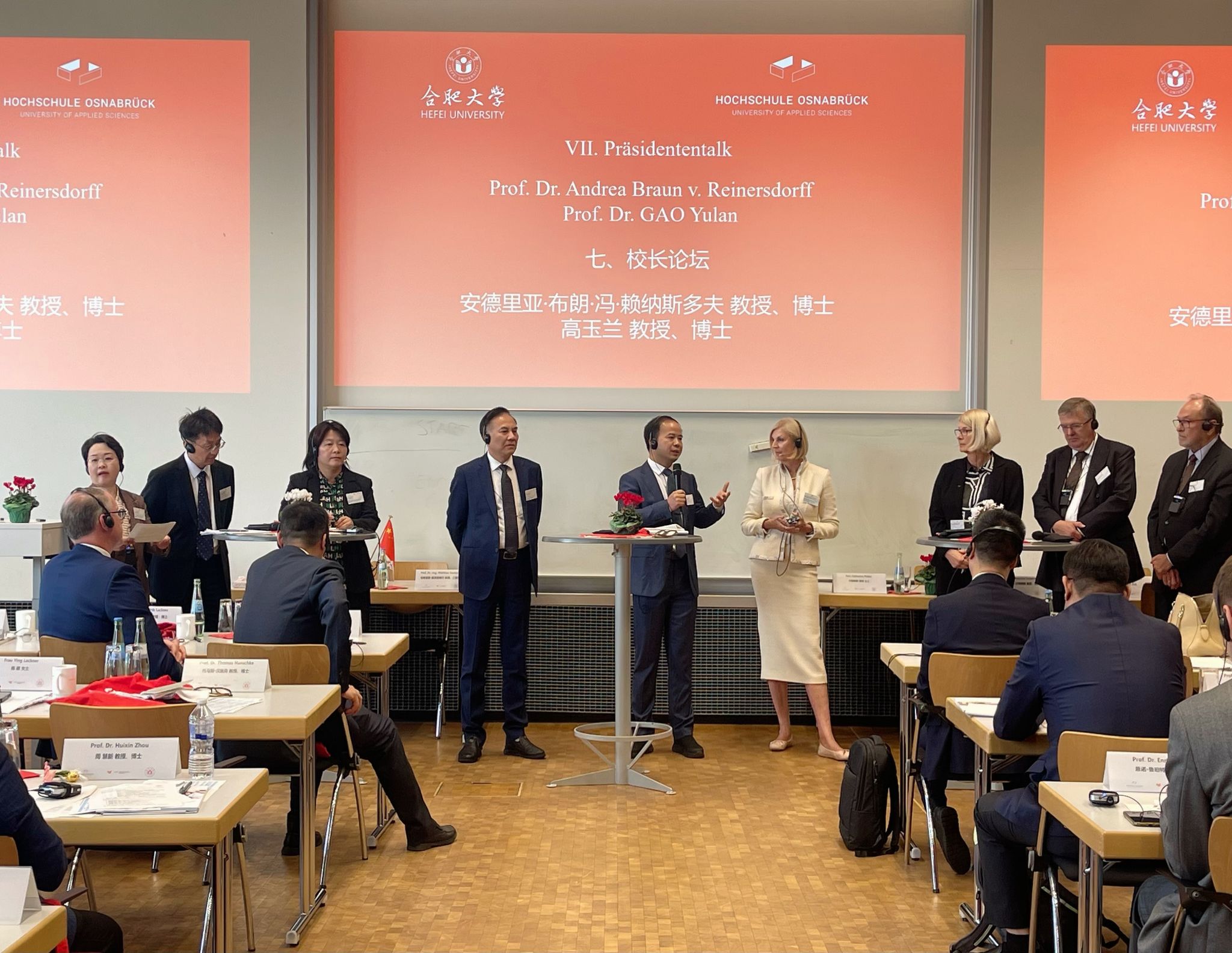 9月12日,第十八届中德应用型高等教育研讨会在德国奥斯纳布吕克应用科学大学召开。德国前总统克里斯蒂安·武尔夫出席会议并致辞,中国驻汉堡代总领事金松宝奥斯纳布吕克市市长卡塔琳娜·普特下萨州科学文化部国务秘书沙赫特纳等嘉宾出席开幕式。校党委副书记、校长盛明科率团参会。