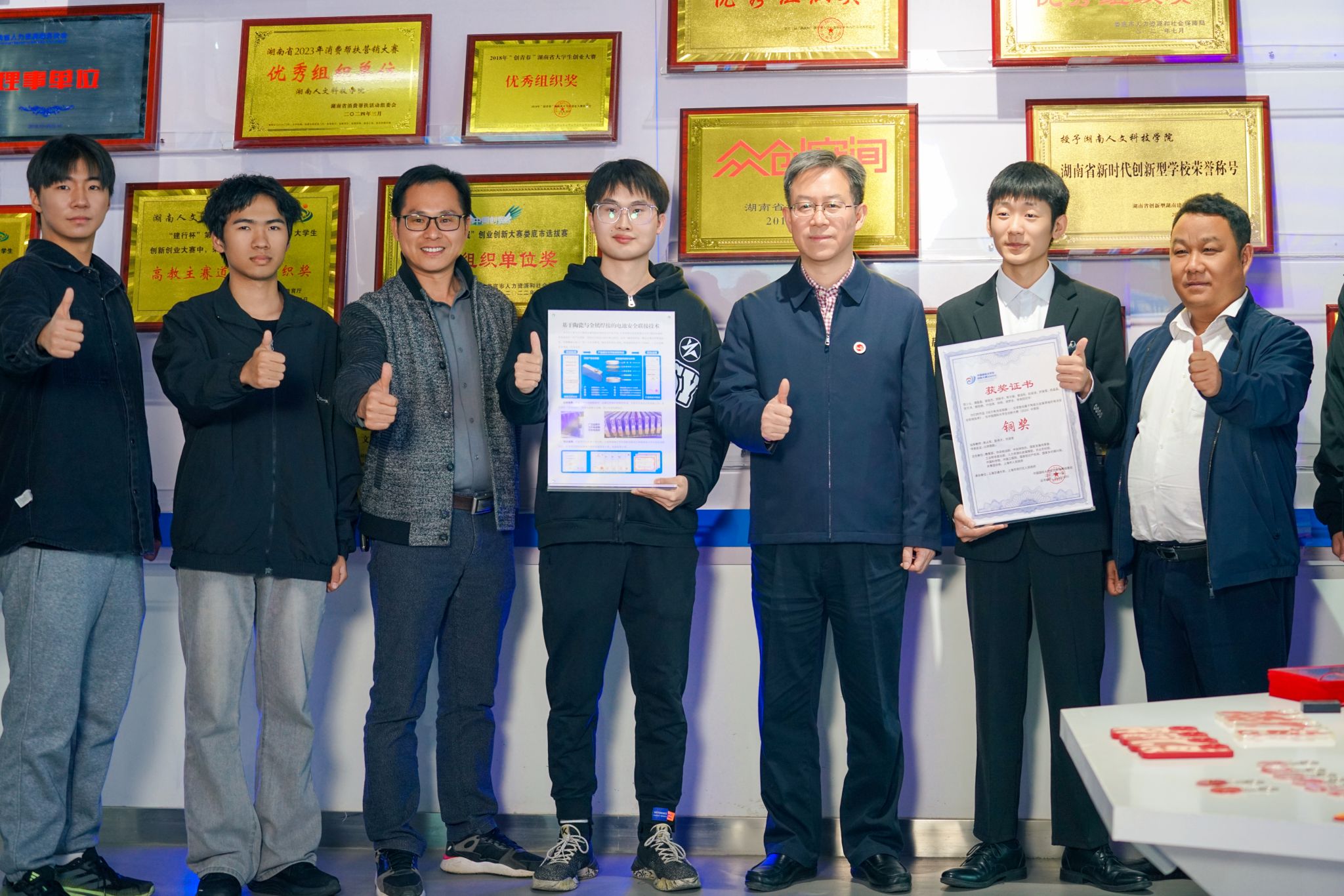 Later, Hu Kaibo visited the Innovation and Entrepreneurship College, where he interacted with the He Shaoyun Lithium Battery Team and the Gong Xin Water Jet Team. During the exchange, Hu praised the He Shaoyun Team for their work on ceramic-metal welding technology, overcoming traditional technical challenges, and developing environmentally friendly and efficient welding solutions. He noted that innovative and entrepreneurial youth are the pioneering force on campus, and their courage to explore and tackle difficulties epitomizes the beauty of youth. Similarly, he commended the Gong Xin Water Jet Team for their innovative practice in developing a new oscillating pneumatic pump to address inefficiencies, high energy consumption, and heavy pollution in coastal sand mining. He encouraged the team to deepen their technological innovations, leverage the construction of Loudi Materials Valley and regional industrial advantages, accelerate the implementation of research outcomes, and let the brilliance of youthful wisdom shine in serving local economic and social development.