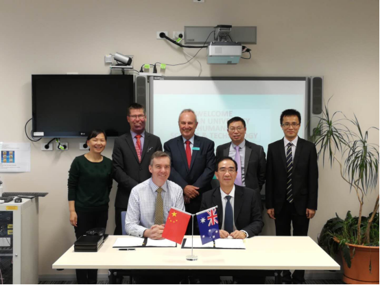 The delegation first talked with Andrew Crowley, Director of VET Department, Brad Polak, Director Business Capability Unit, and Amber Mastrangeli, international project manager. The counterparts introduced the overall situation of of TAFE, and highlighted three training modes: The first is that trainees go to TAFE for training in Australia; the second is that TAFE assigns one teacher to the other institution for training, which is called Master Classes; the third is that TAFE sends a number of teachers to the other institution to train the would-be trainers of that institution, which is called “Train the Trainers”. They also introduced the special programs: Australian Study Tour and Master Classes. Jiang introduced the situation of our university, reviewed the exchanges of the two universities, and said that in the transformation of our university, we would like to further strengthen the exchange and cooperation between two universities in the field of teacher training and student exchange. After the meeting Jiang Jianchu, on behalf of our university, signed a cooperation agreement with TAFE.