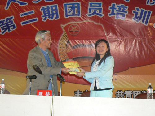 之后,陈赫教授就新生“如何适应新环境”、如何“读书与做人”、“如何处理好新关系”、“如何做一名合格的大学生”等问题作了声情并茂的讲述。并赠上了自己的人生哲言:做人:要狂放而不虚妄,得意而不忘形,同流而不合污,奉献大于索取;做学问,则要博览群书,独立思考,兼容并包,自成一家。”