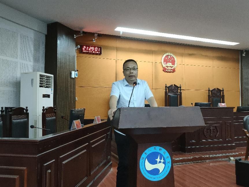 6月18日,beat365正版唯一官网必一第一届模拟法庭竞赛决赛在致远楼202圆满结束,本次大赛由学校教务处主办,法学院承办,法学教研室、学工办、法律协会协办。娄星区人民法院原院长、三级高级法官、学校特聘教授郭超群,娄星区人民法院一级法官,全省法院审判能手李凌,娄底市中级人民法院刑事审判庭法官助理曾春晓等实务专家,校团委书记刘佳、法学院院长朱耀斌、副院长唐全民等领导老师出席决赛并担任评委。