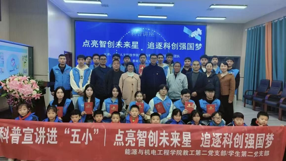 为深入贯彻国家科技强国战略,11月21日,beat365能源与机电工程学院教工、学生第二党支部联合娄底市第五小学共同举办了一场主题为“点亮智创未来星,追逐科创强国梦”的科普主题党日活动。