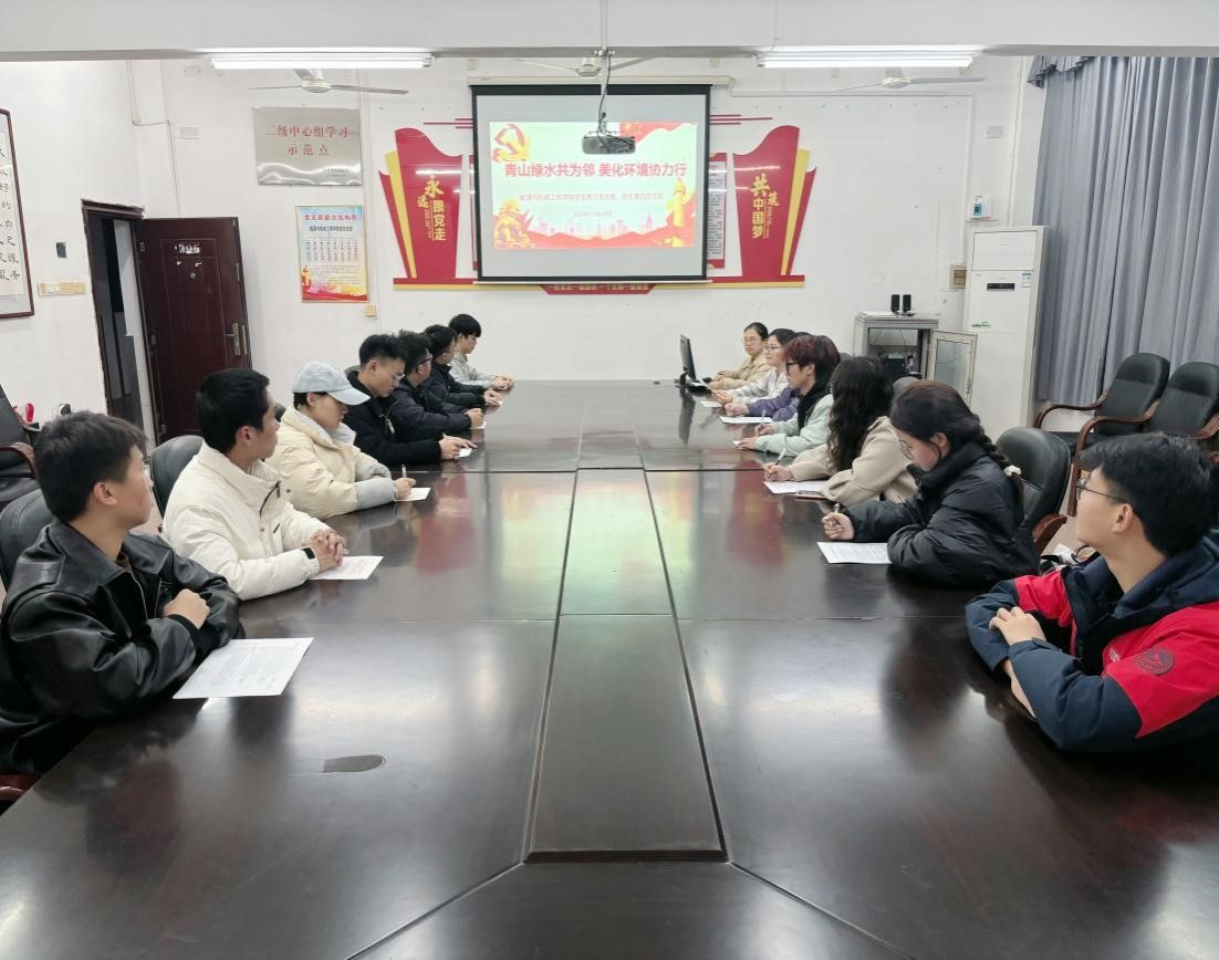 “校园草木砖瓦、国家山川大地,俱是家之瑰宝。家文化既护家园荣誉,亦重环境保育。于校园践行绿色,节水节电、护花爱木,珍视小家园生态;于国家投身环保,倡绿色出行、减污染排放,保绿水青山,促环境永续,升华家文化内涵。”学生第四党支部书记卢婧嫚老师强调。学生第三党支部书记黎娇老师着重指出,身为新时代主人翁,全体师生党员应巧妙地依托专业优势将绿色低碳理念和专业学科竞赛相结合,从能源的高效利用到废弃物的创新处理,从新型环保材料的研发到生态系统的可持续性,全方位地展现绿色智慧与创新思维将环保新风吹遍校园,吹往未来。“原来哪都有我们专业的‘用武之地、有为之处’,只看我们如何以行见‘智’践‘志’,协力共筑美丽校园和绿色祖国。”在场学生纷纷感慨。