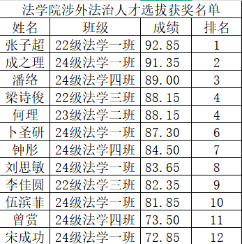 法学院涉外法治人才选拔获奖名单