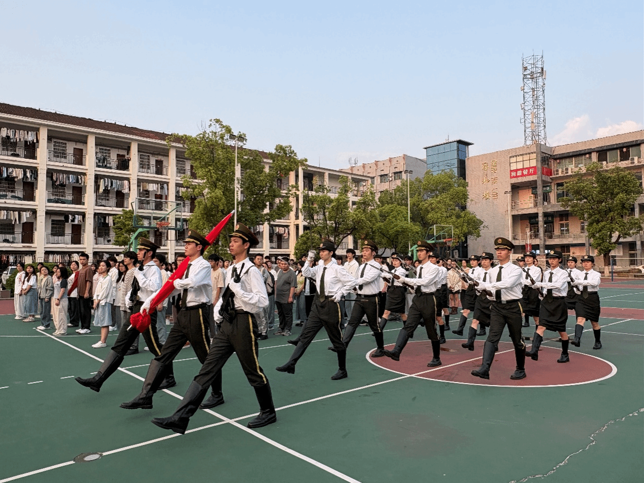 沐浴着朝晖,国旗护卫队以整齐划一、铿锵有力的步伐护送国旗入场。随着激昂的《义勇军进行曲》奏响,五星红旗在全体师生的注目礼中缓缓升起,场面庄严肃穆。