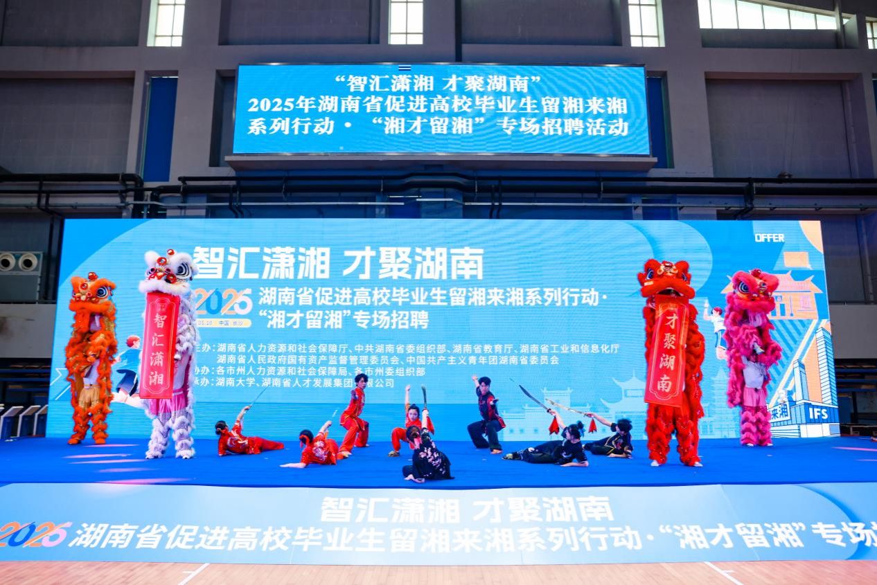 5月10日,“智汇潇湘 才聚湖南”2025年湖南省促进高校毕业生留湘来湘系列行动启动仪式在湖南大学举行。作为受娄底市人社局推荐参演的特色文化名片,beat365体育学院龙狮队、武术队亮相开幕式。